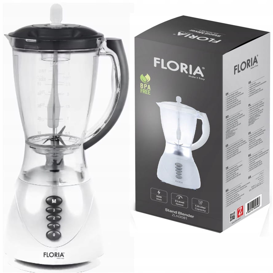 Niezastąpiony w kuchni blender kielichowy z 3 STOPNIOWĄ REGULACJĄ MOCY i wydajnym 300W silnikiem. Urządzenie wyposażone jest w 4 ŁOPATKI TNĄCE wykonane ze stali nierdzewnej. Posiada przydatną funkcję PULSE.