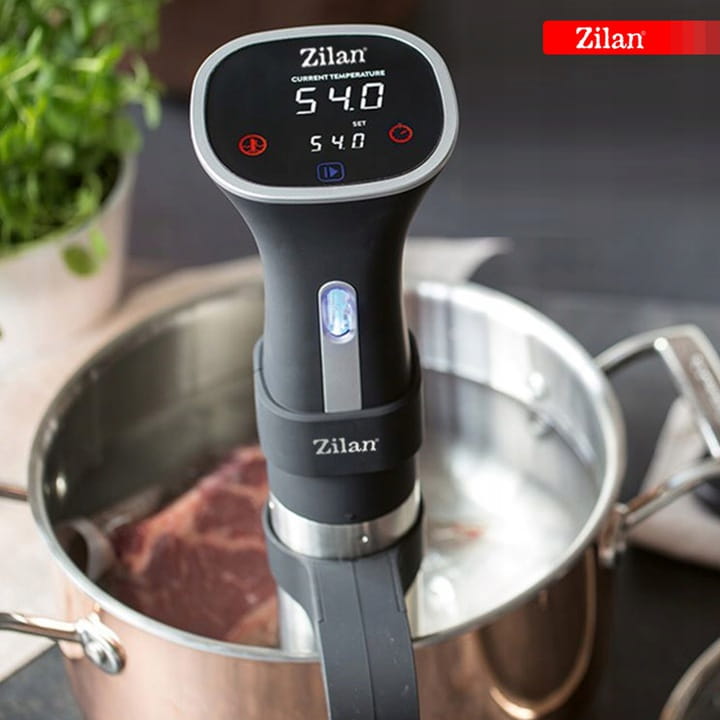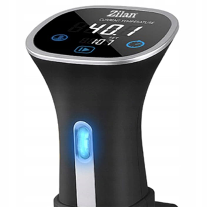 SZYBKIE PODGRZEWANIE WODY Z poziomu panelu dotykowego można ustawić żądaną temperaturę oraz czas gotowania. Urządzenie szybko nagrzewa wodę w naczyniu i precyzyjnie utrzymuje temperaturę. Jedyne czego potrzebujesz to Cyrkulator Zilan Sous Vide, garnek z wodą oraz potrawa w woreczku próżniowym.