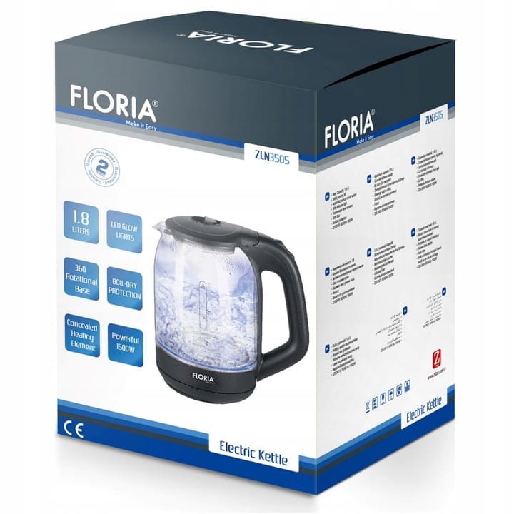 Czajnik FLORIA został wyposażony w bezpiecznik termiczny, który ZAPOBIEGA PRZGRZANIU SIĘ URZĄDZENIA.