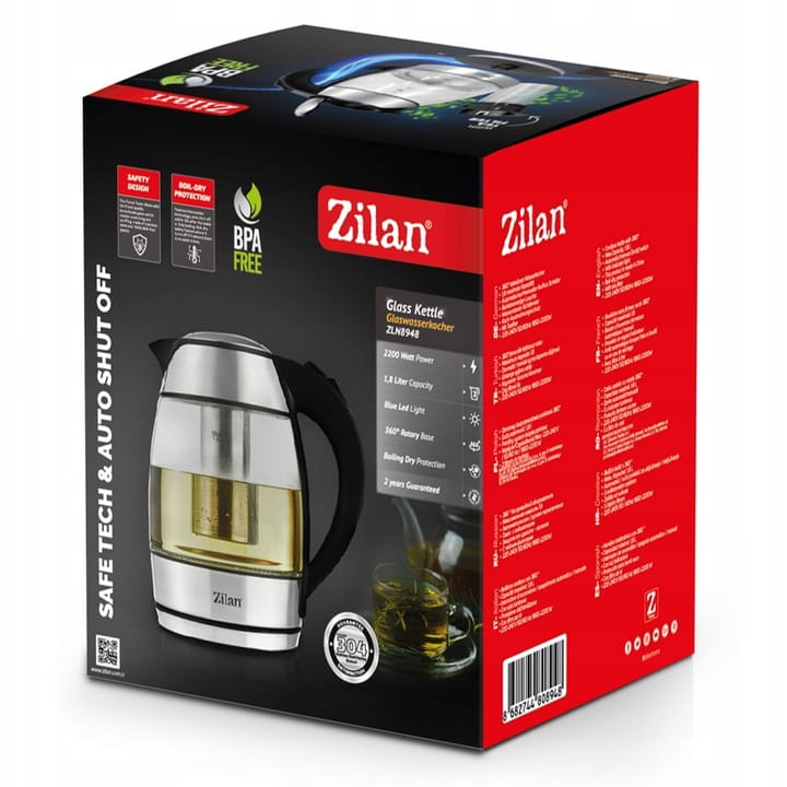 Czajnik elektryczny szklany z zaparzaczem 1,8L, 2200W