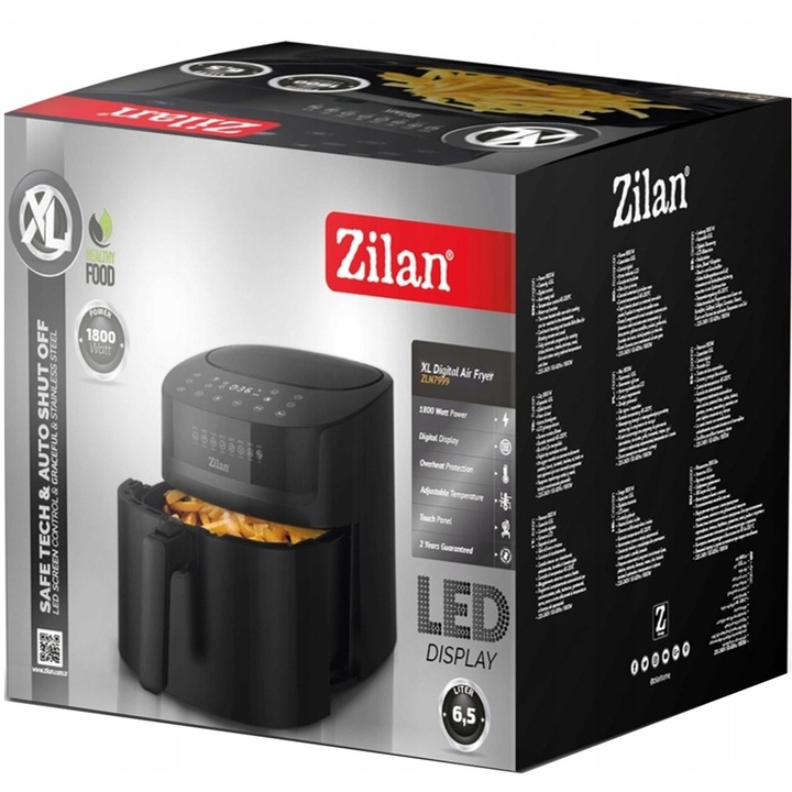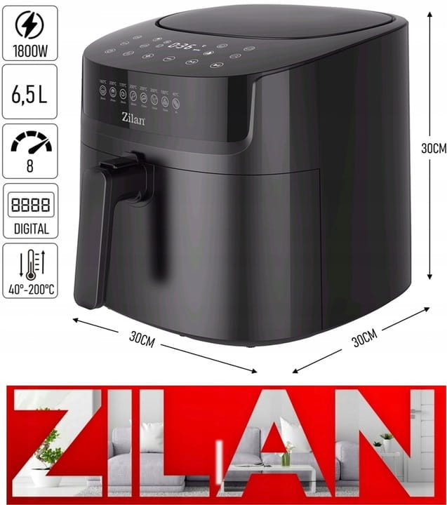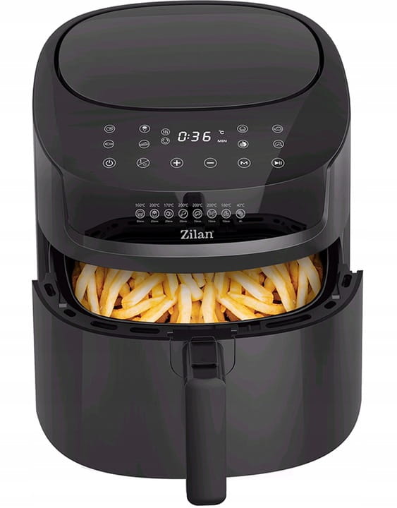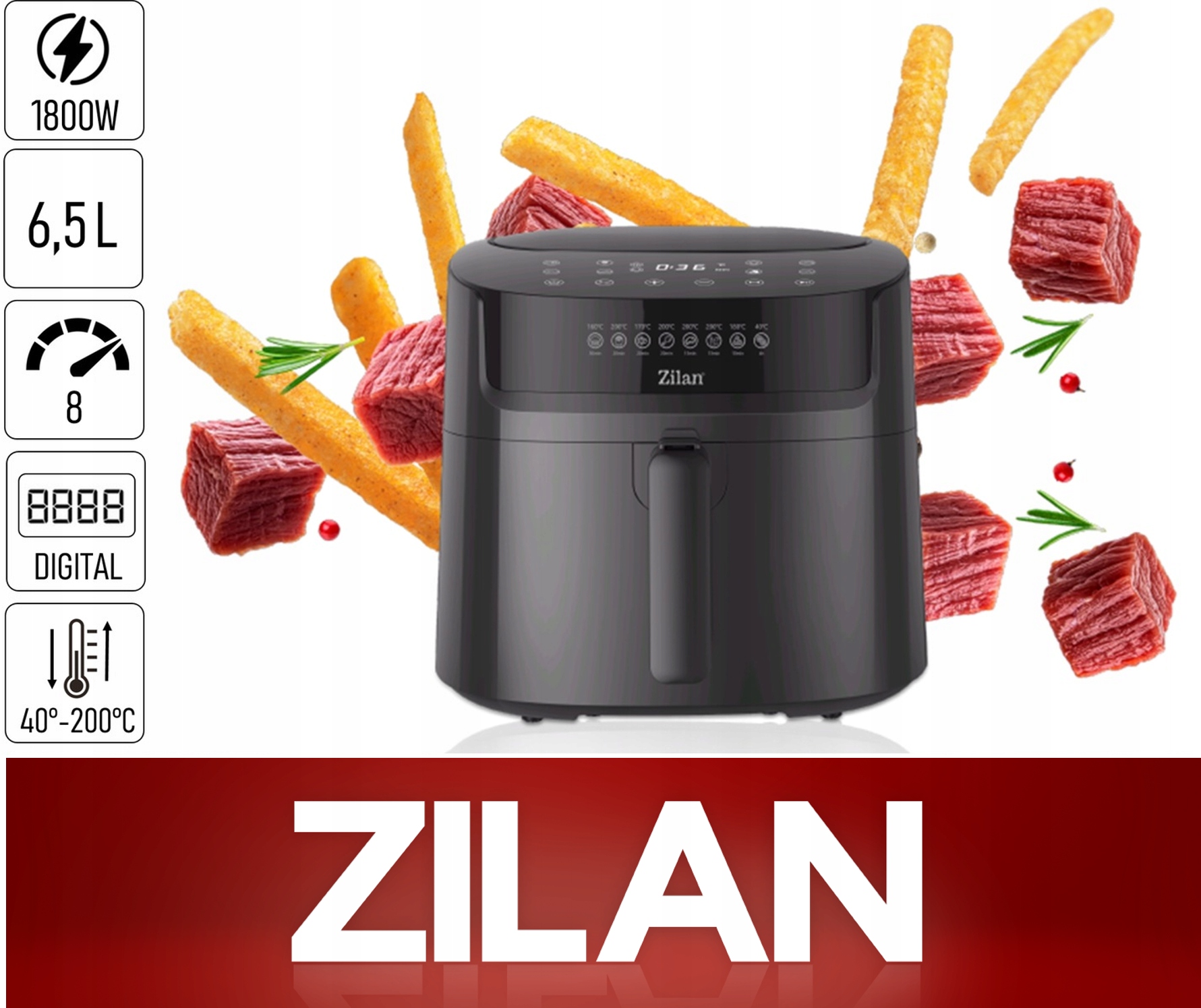 FRYTKOWNICA marki ZILAN umożliwia smażenie, pieczenie i grillowanie niskokalorycznych przekąsek i posiłków z mięs, warzyw i owoców morza i posiłków w małej ilości tłuszczu.